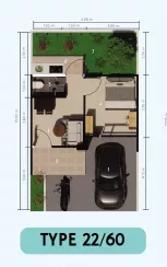 Cluster Helsinki Tipe 22/60 – Daru Metropolis merupakan tipe rumah 1 lantai yang dilengkapi dengan 1 kamar tidur, 1 kamar mandi, ruang tamu/keluarga, dapur, halaman belakang, teras, dan carport untuk 1 mobil. Cluster Helsinki Tipe 22/60 memiliki luas bangunan 22 meter persegi dan luas tanah 60 meter persegi yang didukung dengan kapasitas listrik 2200 watt.
